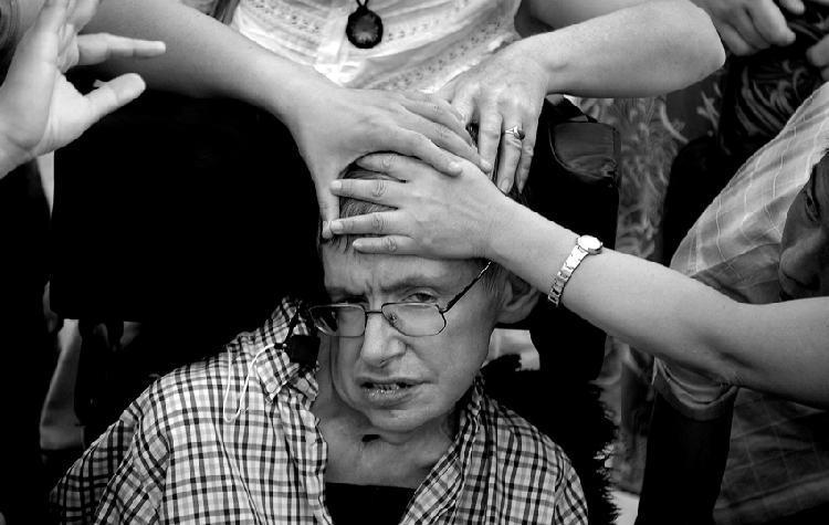 2006年6月17日 英国著名科学家霍金抵京的第二天,来到了天坛,在一颠簸的石头路上,霍金头部突然剧烈摇晃,多只手迅速扶向他的头,保护他的大脑。