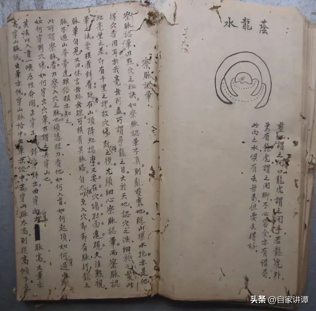 《寻龙点穴秘诀》,明清时期民间抄本古籍,160页面内容,有虫蛀。在古代中国,寻龙点穴是一项深受重视的技艺,传承千年。