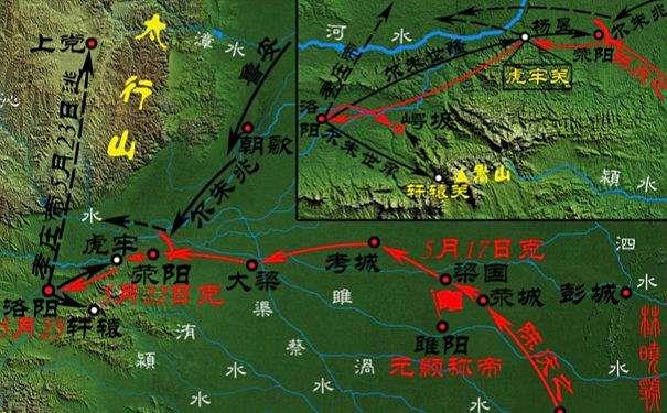 不久,元天穆等带领军队围城,陈庆之率三千精骑背城而战,击破了元天穆的围攻,元天穆一看败了就独自逃跑了,剩下的梁军死的死降的降,入城后陈庆之收缴荥阳的储备,牛马谷帛都不可胜计。得到补给后的梁军旋即进攻虎牢,虎牢守将不敢迎战,弃城而逃。