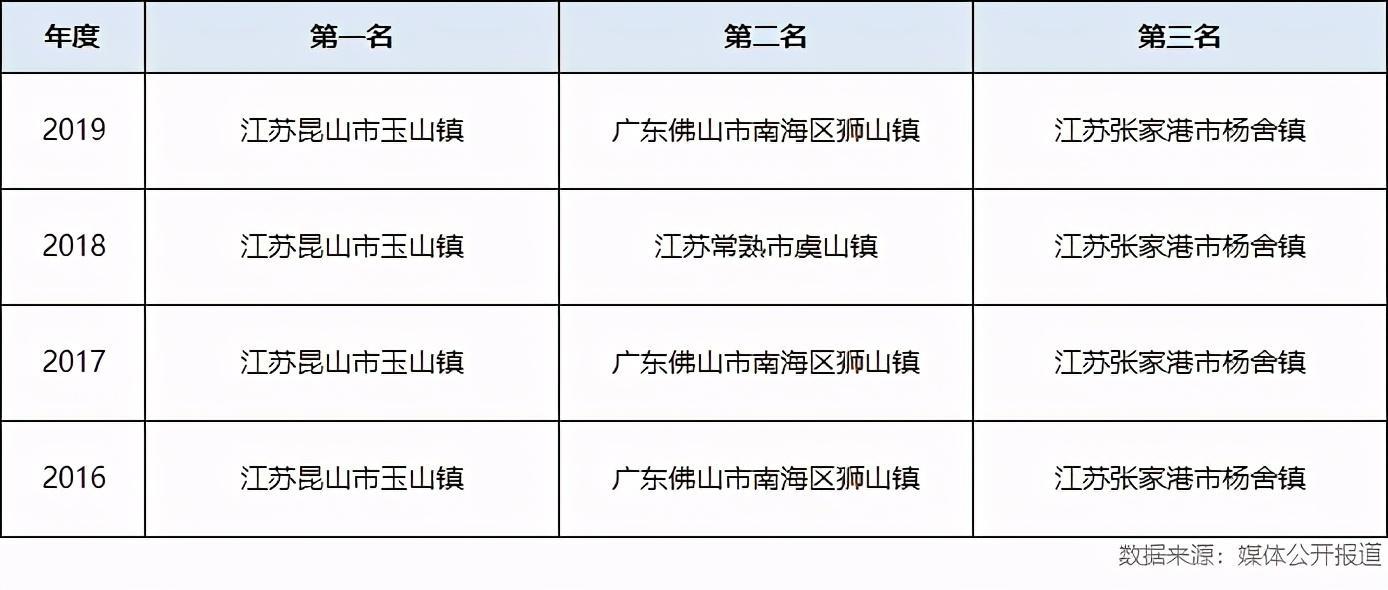 从2016年到现在(有报道说是2014年开始,但是查不到相关的报告了),四年的榜首都是玉山镇。