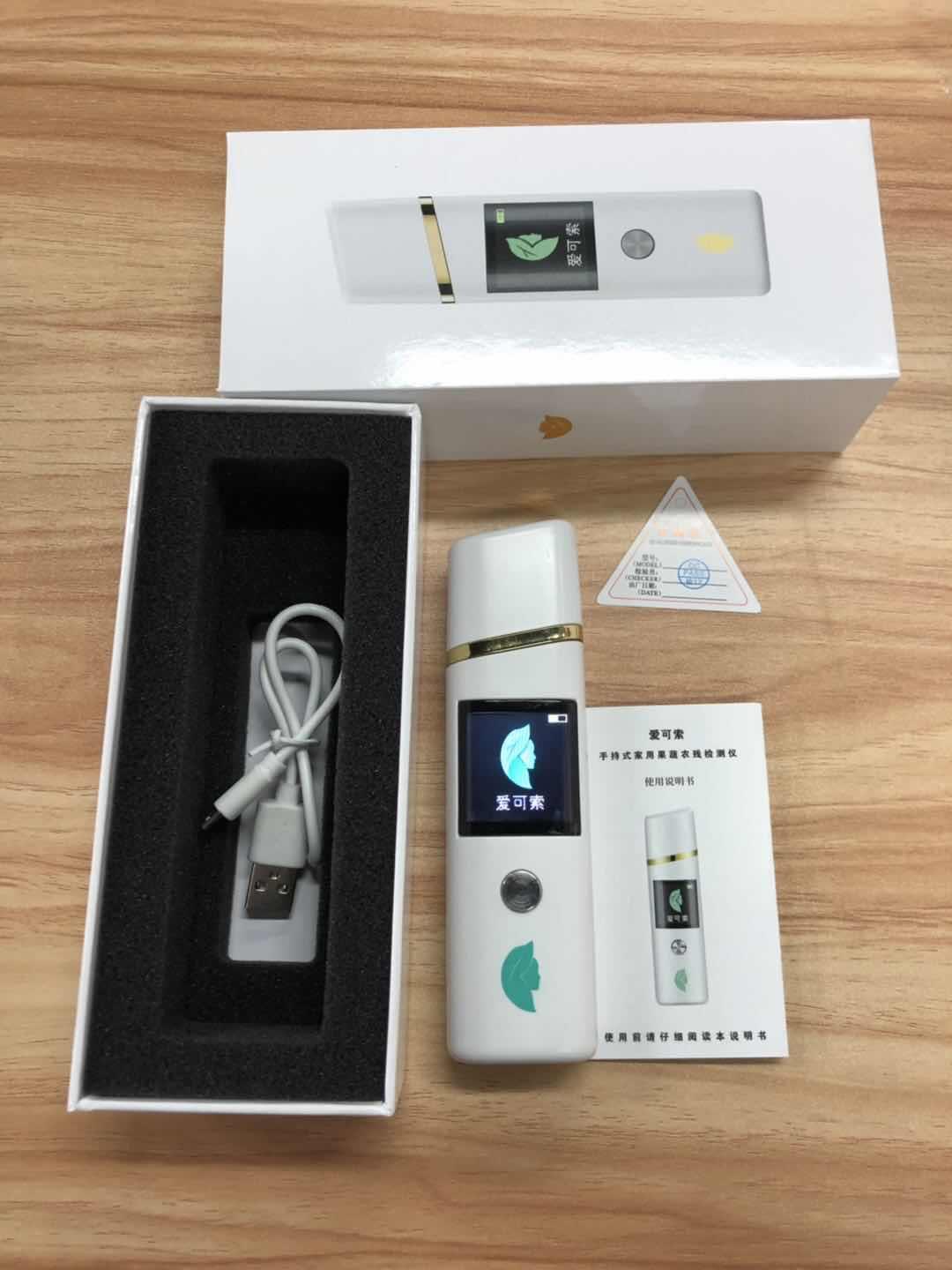 但以前验出来很严重,也不代表我买的这些有。我可以自己测一测。所以我拿出来这台爱可索手持式家用农残检测仪。