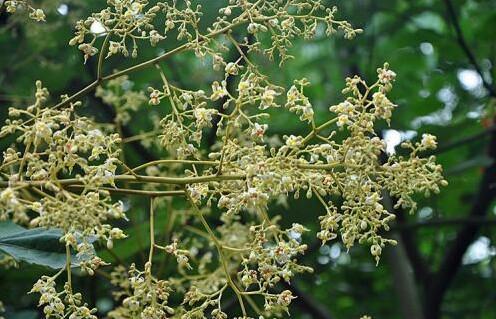 梧桐花又名 金乌贼(海螵蛸),圆锥花序顶生。花单性,无花瓣。就像是情窦初开懵懵懂懂的少女情怀,刚刚谋生出了爱情的心思。