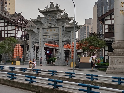 今天有空去了弹子石老街,以前听说过这个地方但一直没去。走到那里映入眼帘的是高大石雕门。街道风格比较古朴结合现代元素感觉很好。里面的店铺是一些小吃和文艺小店。走到里面不收任何门票值得去打卡看一下。