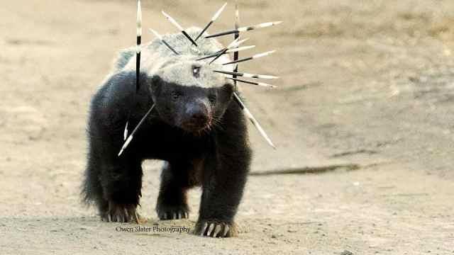 为什么叫平头哥呢?首先他头部光滑,背披白毛,远远看去就是平头一样,关键是它什么都敢吃,毒蛇,那就是辣条,什么豪猪,狮子,老虎,猎豹等平头哥都没有放在眼里,平头哥一生只有两个任务,不是在干,就是在干吃的路上!是动物界的扛把子。