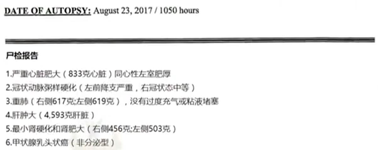 在随后不久的尸检报告中里面,可以看到原因。很多网友推测:虽然不是直接引发死亡的原因。但是由于长期高强度的训练,加上黑魔法的副作用可能是主要原因。