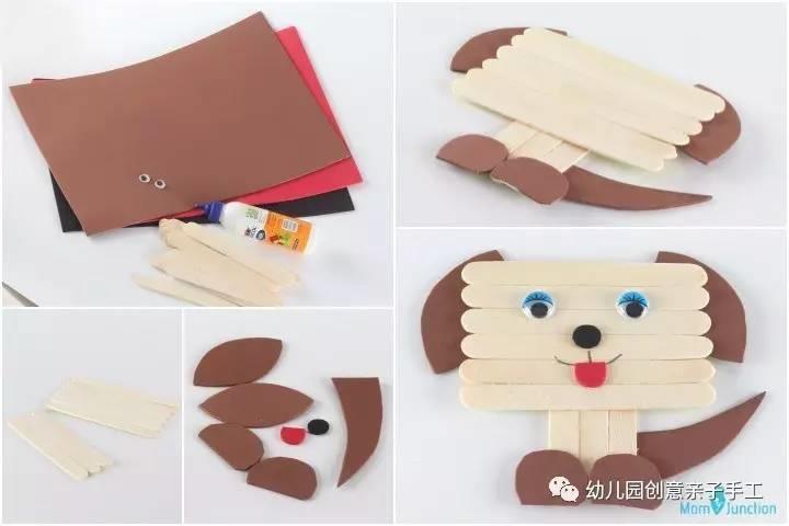 准备九根冰棍棒拼出小狗的头和身子;然后用海绵纸剪出小狗的耳朵、 鼻子、 爪子、 尾巴,最后用胶水拼接起来,修饰一下即可。