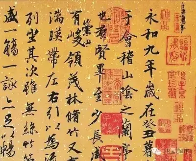 王羲之的书作用“内撅”笔法,使笔画犹如光洁秀劲的折钗股,骨肉调和;结体平正安稳,左右揖让,似斜反正。表现出一种刚柔相济、阴阳相和、不激不厉的风格。楷书作品具有浓厚的隶意,纵向笔画短促,横向笔画张扬,字态欹侧,呈横张之势。行书作品中锋、侧锋并用,而归于中锋,点画之间的顾盼、使转翻折、牵丝引带等都十分丰富;结体欹斜反正;章法突破隶书体系的横式,而吸收草书的章法,以连贯的气势形成纵势,表现出行书的节奏美。草书作品结体开合自由,牵丝连贯,俯仰相应,不少字连成一组,笔画流畅,有强烈的节奏感。