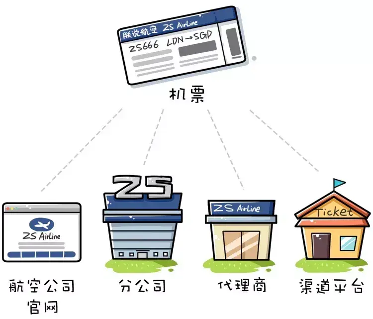 航空公司也会下分给不同的代理商