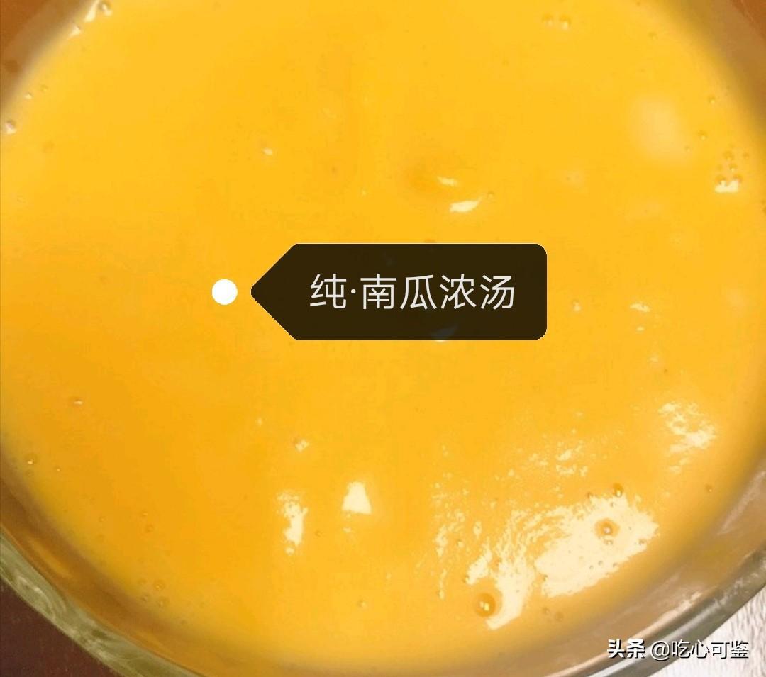 乘热刮出南瓜肉,放入豆浆机。往豆浆机里加适量牛奶,然后启动机器。开盖观察南瓜汤的粘稠度。如果太稠了,就再加点牛奶。如果觉得不够浓稠,而南瓜又已经都放进去了,可以放一小把小米进去,再次启动机器。倒出南瓜汤,装入碗中。老南瓜本身就挺甜的,如果不是很喜欢吃甜食的人,就可以享用你的南瓜浓汤了。如果想要更甜一点,建议加炼乳或蜂蜜。若想试试西餐风味,可以在汤里加适量盐和黑胡椒。