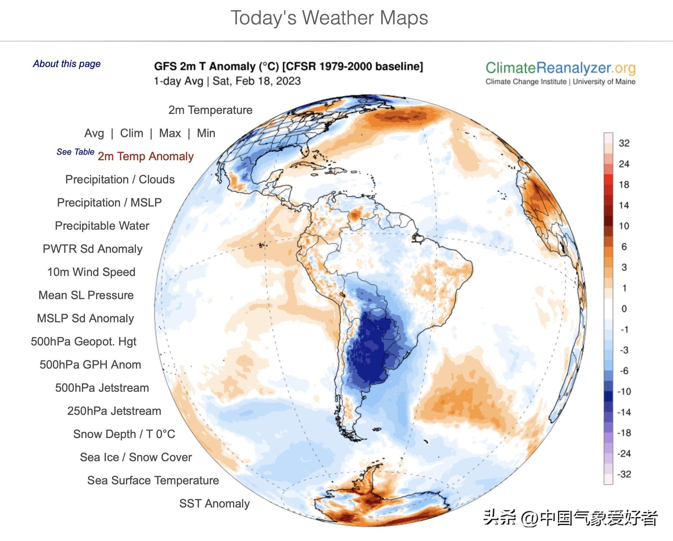 中气爱之前的文章中就说过,在北半球,去年下半年到今年,我们已经见识到了很多次,冷暖大起伏的情况,很多时候这种冷暖大起大落的状态被称为天气抽鞭事件,先从极暖速冻到极寒,再从极寒飞速回归到大幅偏暖的状态。很显然,南半球南美洲的不少国家也正在经历这种过程。