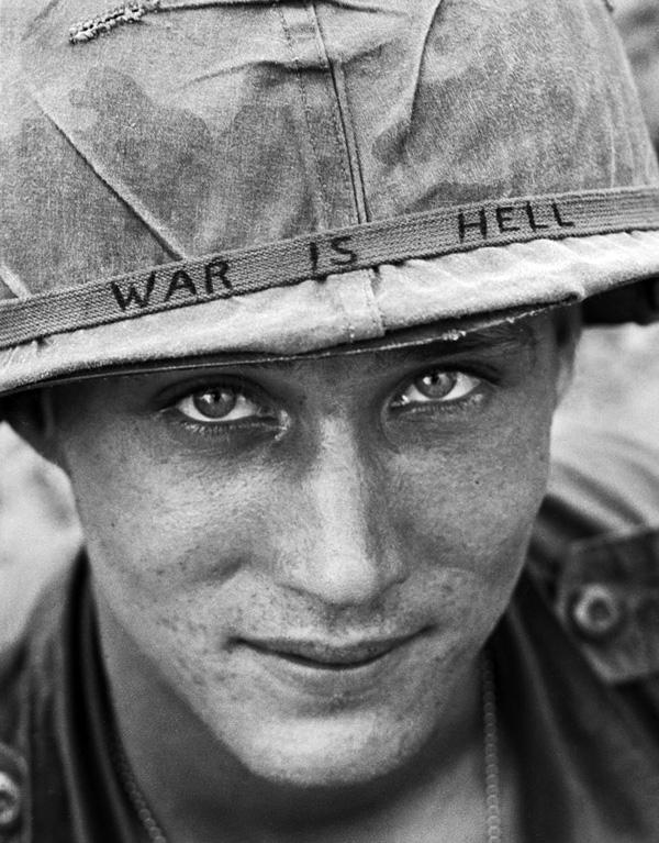 图1:1965年6月18日,一名美军士兵头盔的绑带上清晰地写着“War is hell”(战争是地狱),可谓一语中的!这不由得让我想起了那句“吸烟有害健康”……