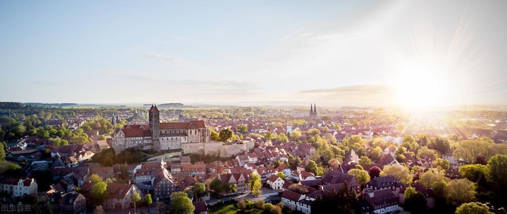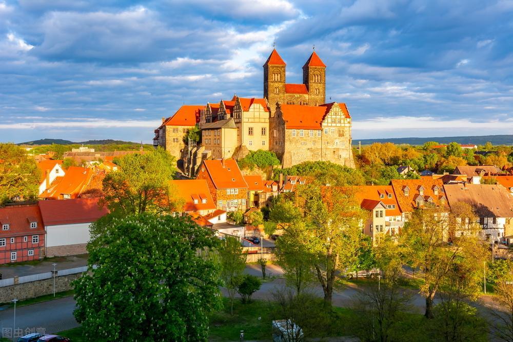 奎德林堡位于德国中部,它是在贝斯滕道尔克城的基础上发展起来的。贝斯滕道尔克城有两个居住区,一个是商人居住区,另一个是逃避战乱的农民组成的居住区。因此,奎德林堡的广场、教会、市政厅都是两个,甚至连市长也是两个。奎德林堡圣塞尔巴提乌斯修道院教堂,不仅是罗马式建筑的典型代表,还是奎德林堡的王室。教堂有三廊式地下祭室,有国王、王妃的墓和历代修道院长的纪念碑。