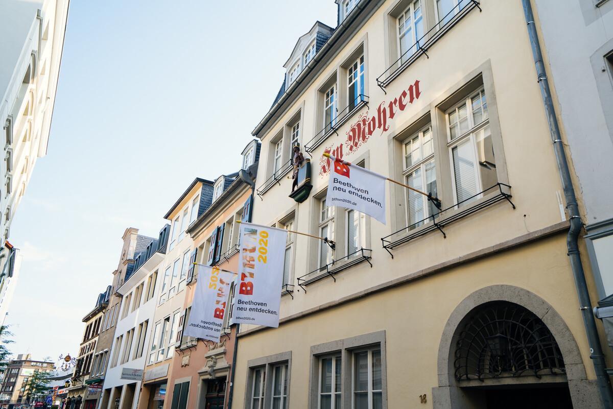 贝多芬故居在市场大街附近的波恩加塞路20号,街道两旁都是黑瓦红墙的民居。1889年,波恩市民投资将这幢3层的楼房改建成贝多芬博物馆。博物馆下两层陈列有贝多芬的日常用品、乐器和乐谱手稿等。