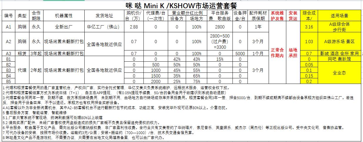 咪哒mini K之前的价格模版是“购机费+平台服务费”,通过买断或联营购销设备,客户采购成本高,设备投入市场经营后,面对土地和设备的后续成本难以盈利,客户骑虎难下。