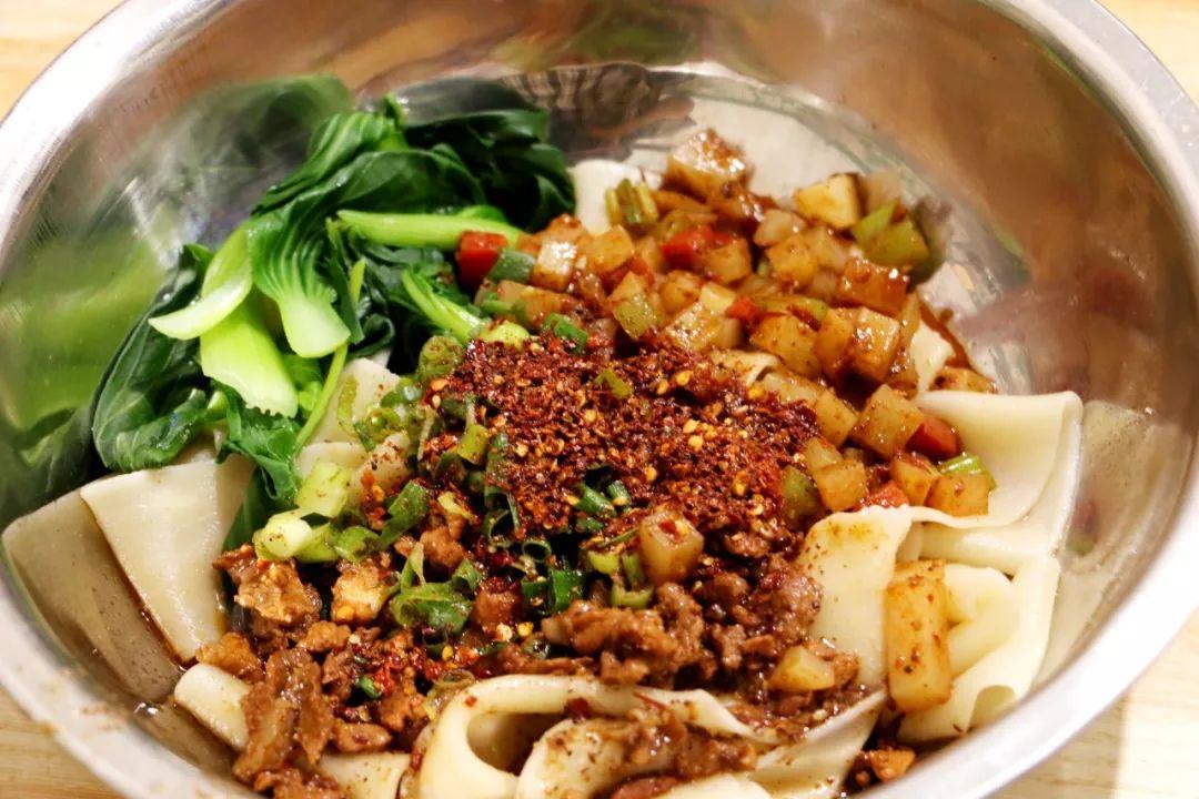 最推荐店里的三合一,西红柿鸡蛋搭配炸酱,滚烫的油往干辣椒上一泼,香味一下子就冒出来了,这家面条偏厚,口感筋道,更适合老陕的口味,点评里也有很多外地来打卡的,整体还是好评偏多。