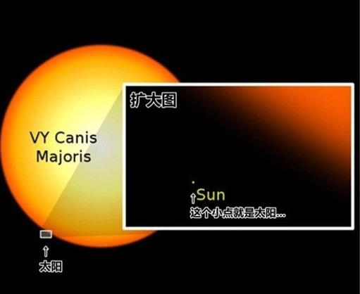太阳和目前已知的最大星体——大犬座VY的比例图。