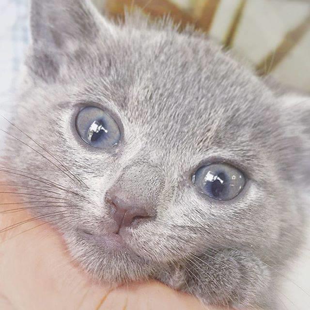 乍一看这一只大眼呆萌的猫咪,比较懂猫的人估计会脱口而出,这是英短蓝猫!!