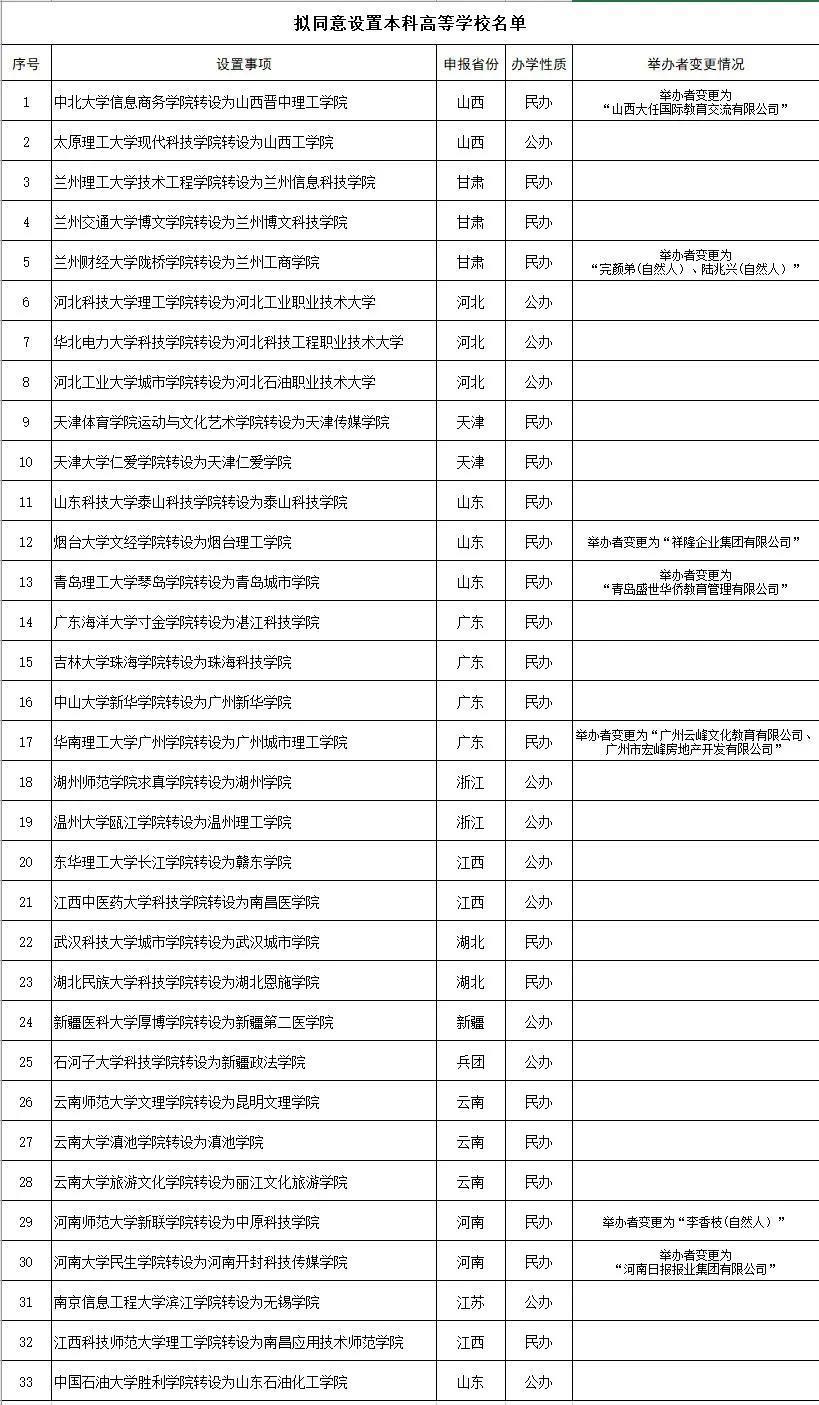 近日,教育部正式发布了《关于拟同意设置本科高等学校的公示》,本次公示拟同意包括天津2所高校在内的共计33所院校转设为独立设置的本科学校。同学们,你们知道究竟天津有哪两所高校在本次的公示中改名了吗?