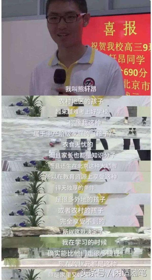 北京市高考文科状元,在高考这一套规则下玩的最溜的人,不想着如何输送鸡汤巩固自己的权威,保证自己的利益,反倒非常清晰的指出了规则的不平等,对状况有清醒的认知。