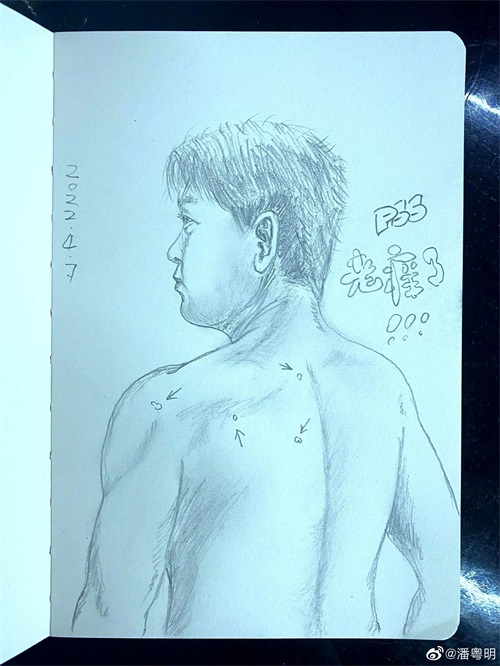 所以,潘粤明就对着自己的照片,凭感觉把痒痒的部位给画了下来。