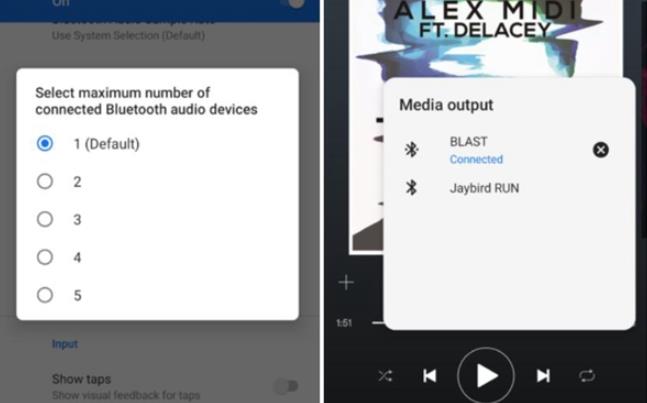 7、在安卓8.0中,一次最多可以连接两个蓝牙音频设备,一个用于通话,另一个用于媒体播放。在安卓9.0中,用户可以最多5个设备同时连接,在开发者选项当中打开即可。