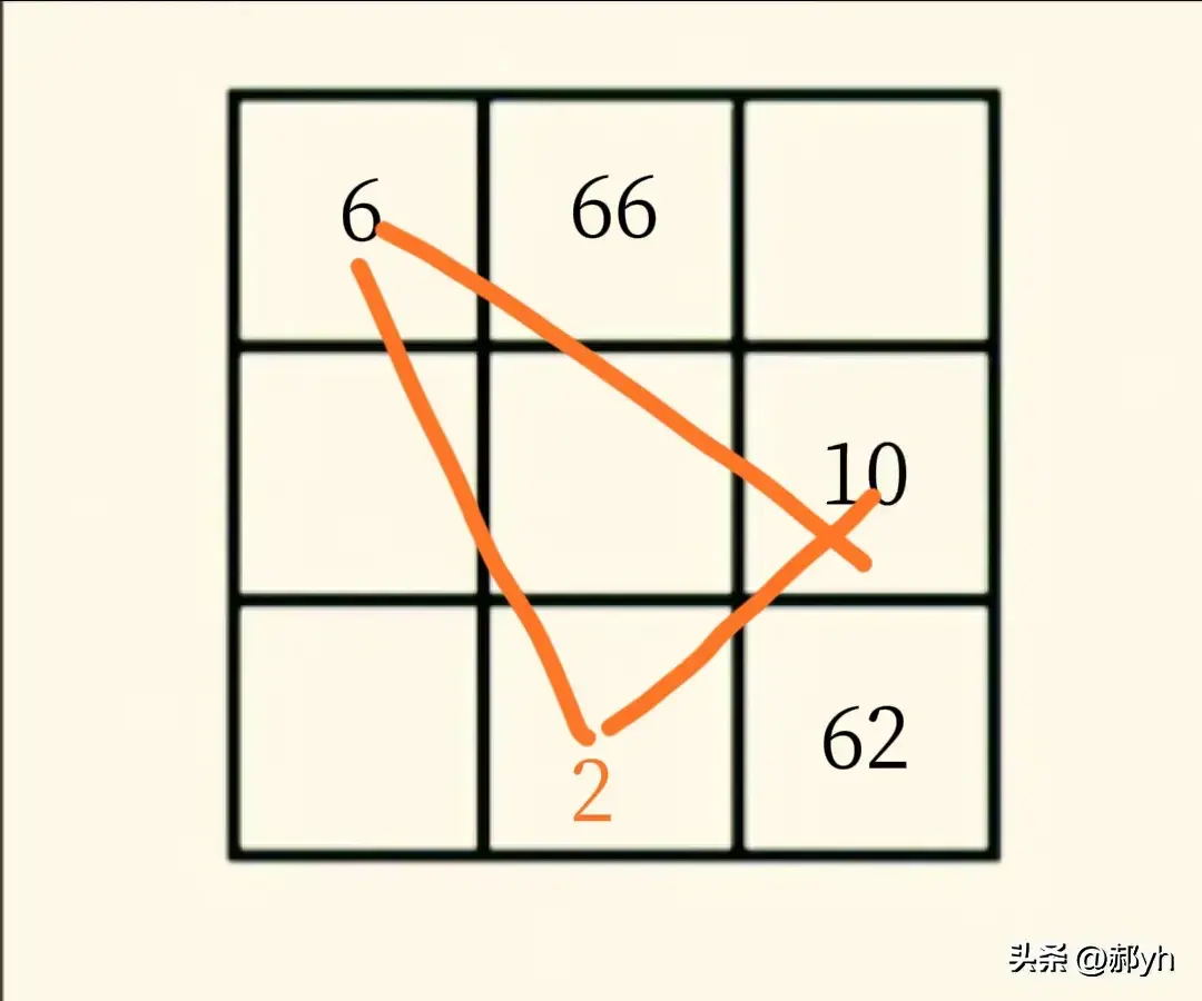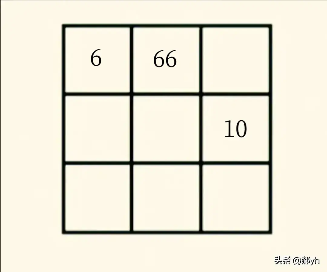 题目:次小数是6,最大数是次小数的11倍。请在图一中填上合适的数。并使其横、竖、斜向三数之和都相等。