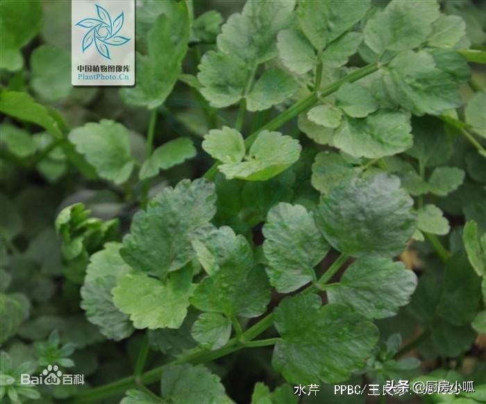 水芹的别名为水芹菜,属伞形科多年生草本植物。其株高30厘米左右,全株无毛。茎下匍匐,节处生须根。茎上部直立、多分枝,具有锐棱,中空,叶片1~2回羽状分裂;叶片披针形,长1.5厘米~4.0厘米,叶柄长达10厘米左右。