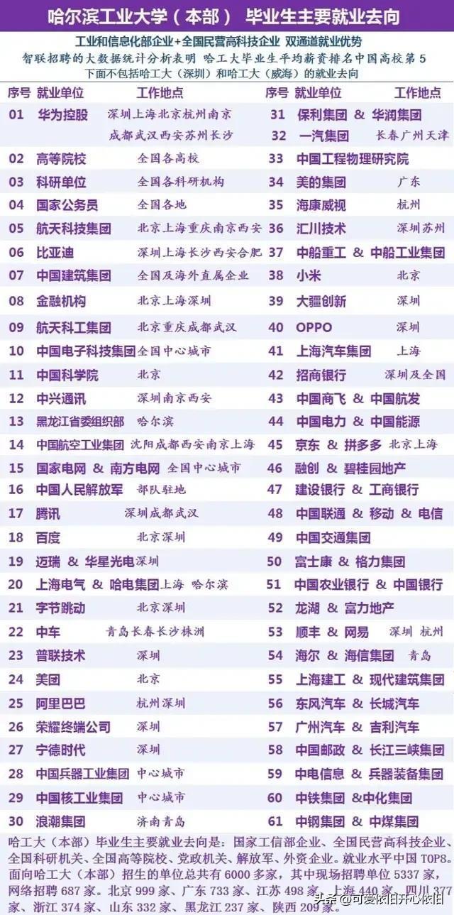 面向哈工大(本部)招生的单位很多, 根本就不用愁就业,总共有6000多家,其中现场招聘单位5337家之多,网络招聘也有 687 家。想继续深造的孩子们学校的保研率也是非常高的。