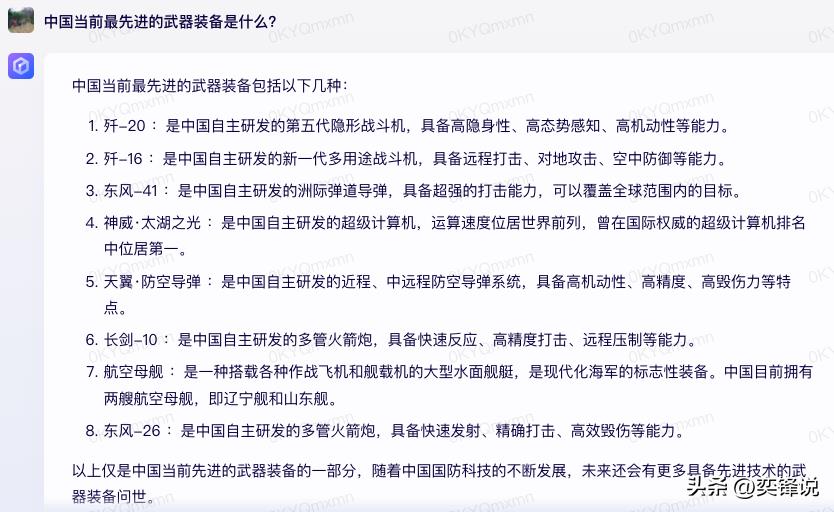 #文心一言#这是文心一言回答的中国最先进的武器装备#武器美学#