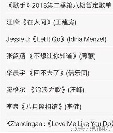 歌手2018第八期歌单