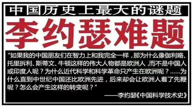 英国学者李约瑟在其《中国科学技术史》中提出一个困扰许多人的问题:“尽管中国古代为人类科技发展做出了很多重要贡献,但为什么科学和工业革命没有在近代的中国发生?”这就是李约瑟之谜或者李约瑟难题。