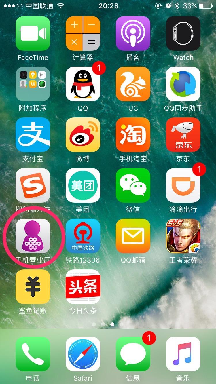 第一步:打开手机(联通用户),找到手机营业厅,没有的同志们一定要提前安装好。