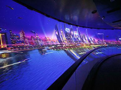 这里有个小展厅,还有环动多媒体秀,就是站在一个环形的平地电梯上,电梯很慢很慢的转着,我们就可以看幕布上呈现的一些上海的景象。