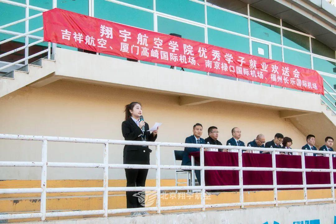 3月3日,翔宇航空学院优秀学子就业欢送会在燕郊校区隆重举办,热烈庆祝吉祥航空、厦门高崎国际机场、南京禄口国际机场、福州长乐国际机场等数百名优秀学子成功圆梦。翔宇教育板块副总裁曹克广,翔宇教育集团教学总管理中心院长刘晓娟,河北翔宇航空专修学院院长宋锐,副院长袁剑,副校长柰连明、李广伟、于泽龙,校企合作副院长贾东旭、韩小燕,翔宇教育集团品牌总监刘洋出席此次欢送会,翔宇全体师生及本次就业学子参加大会。此次大会由河北翔宇航空专修学院宋锐院长主持。