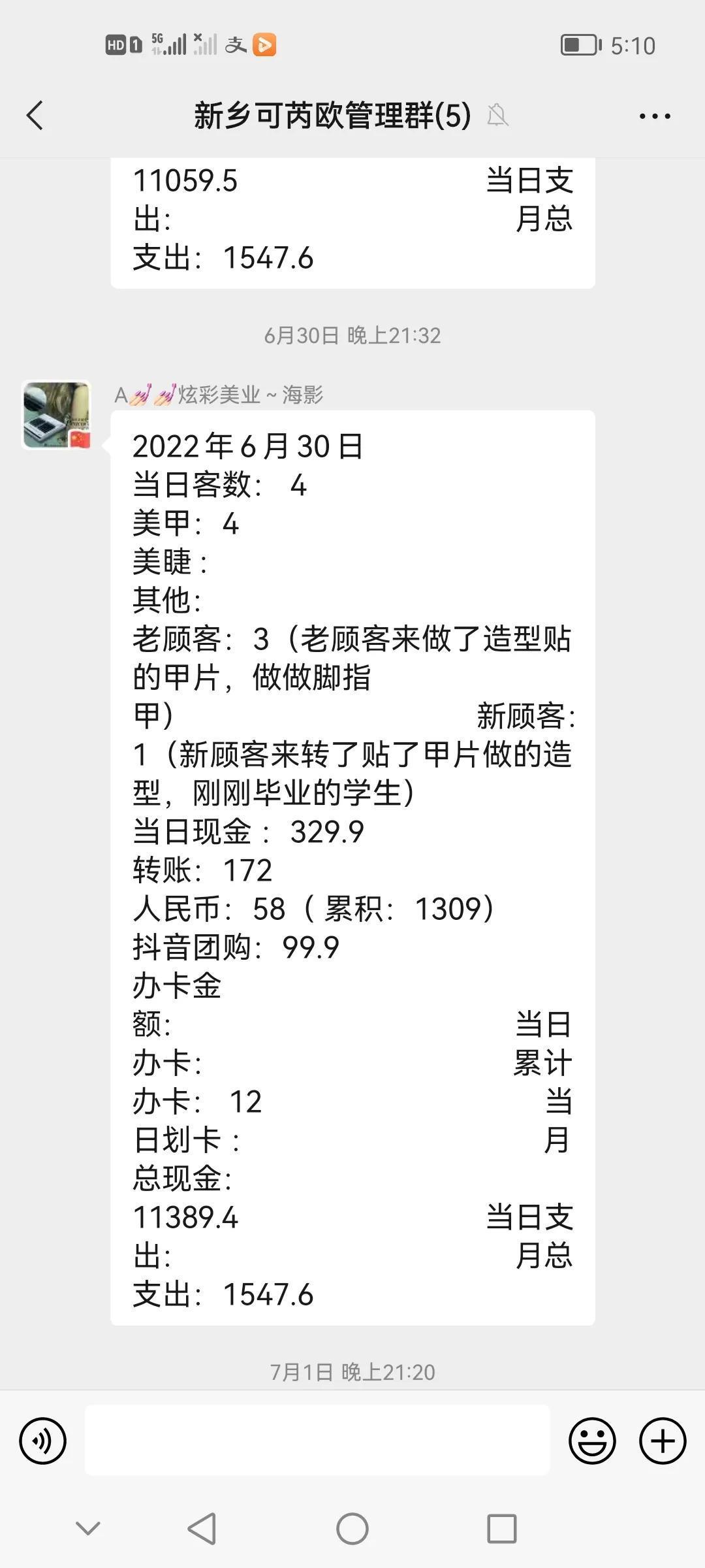 聊完关店和开店大致情况,最后在说说大家最关心的问题,开美甲店收入如何。下面我就以可芮欧新乡店做一参考,不够客观但数据真实!先说明一下这个店的情况,可芮欧新乡店是在新乡长途汽车站旁边金源批发城内的一家小店有10平左右现在有一个店长两个员工共计三人,这个店也是硬件最差的一个店,而且晚上6点商场关门我们店也只能下班,错过一个晚高峰,因为美甲店晚上还会在忙一阵!(之所以说这家店一是因为这个店是我最早的店也是最有感情和最熟悉的店)