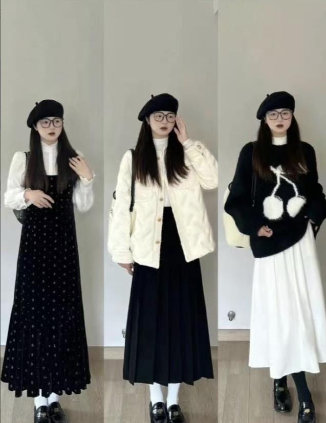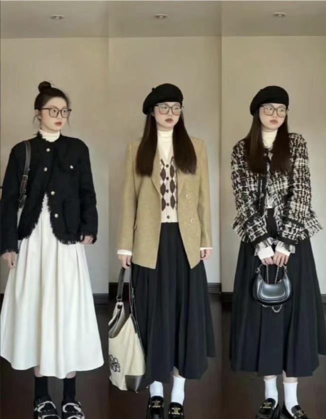 在寒冷的冬季,优雅的复古裙装可谓是一抹温暖的风景线。黑色修身连衣裙,搭配一条格纹围巾,既保暖又不失时尚。浓郁的复古氛围仿佛穿越回上世纪,给人一种别样的典雅感。配上一顶羊毛贝雷帽,瞬间将整体造型提升到时尚巅峰。