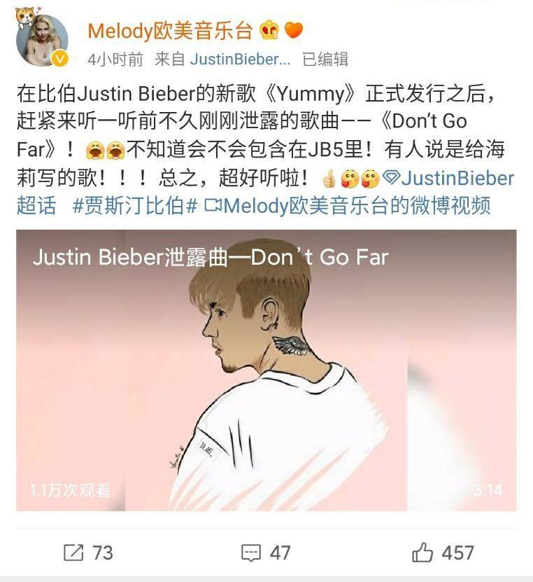 第四份惊喜是后天凌晨一点,《Yummy》的MV就要在各大平台上线啦!不知道这次比伯会不会出镜呢?超期待!