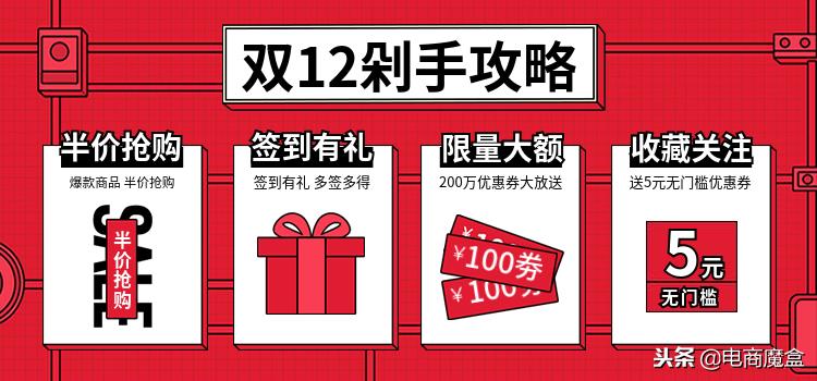 淘宝1212活动正在如火如荼进行,但是不少卖家对于如何报名淘宝双12活动,以及各会场的玩法仍旧有一定困惑。电商魔盒就1212活动玩法中一些要点进行了提炼,卖家们抓紧扶手快上车!