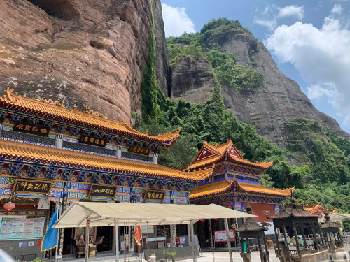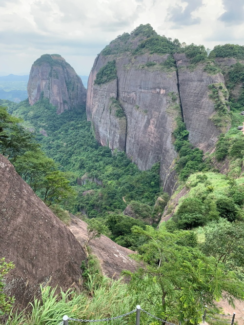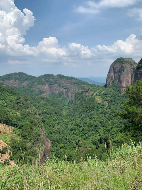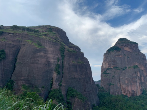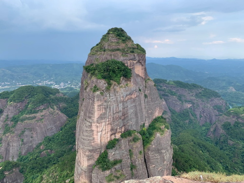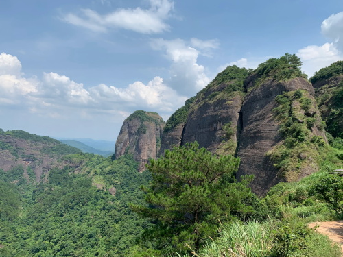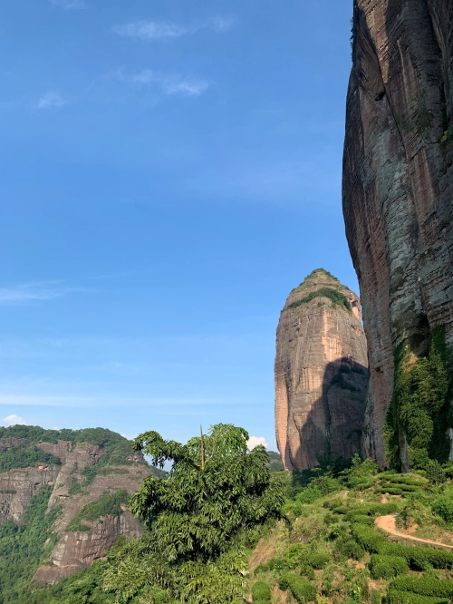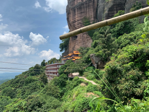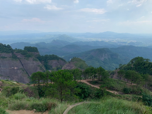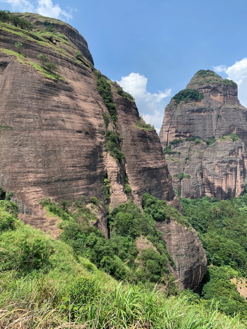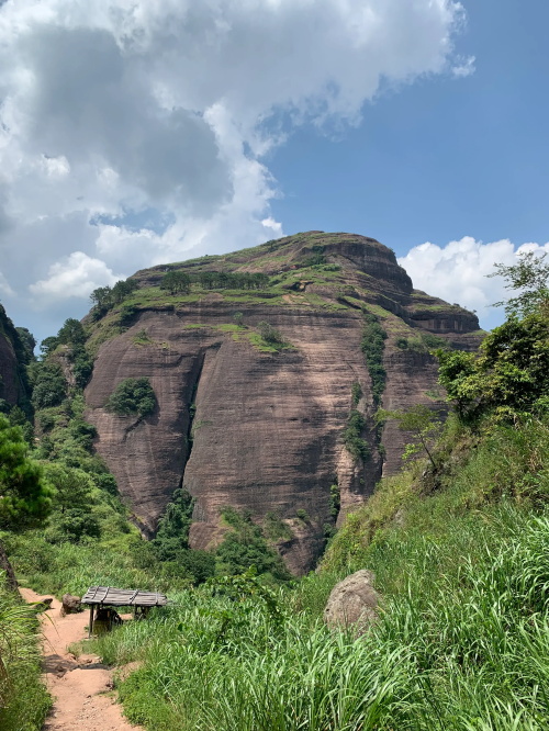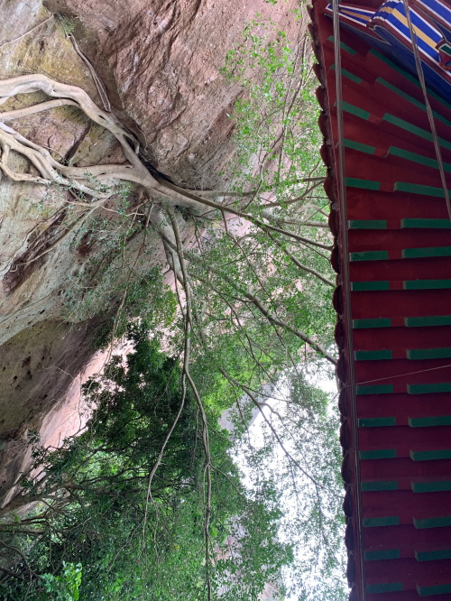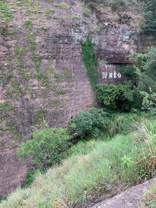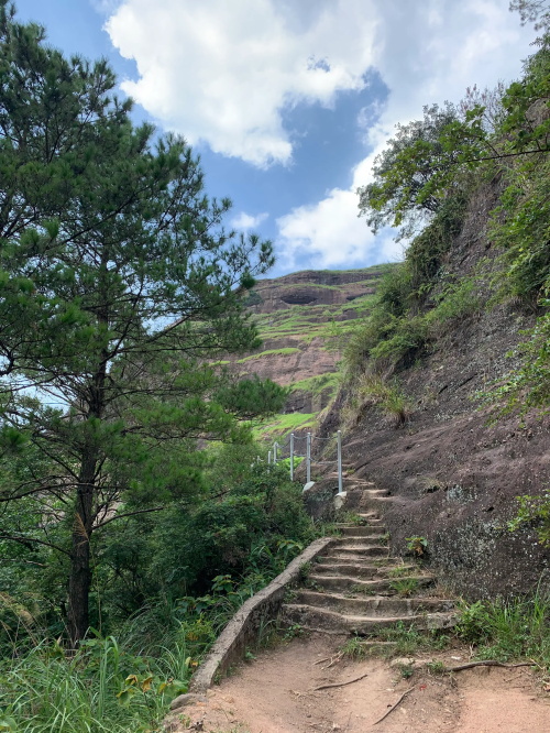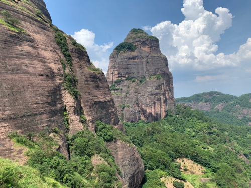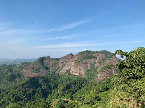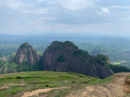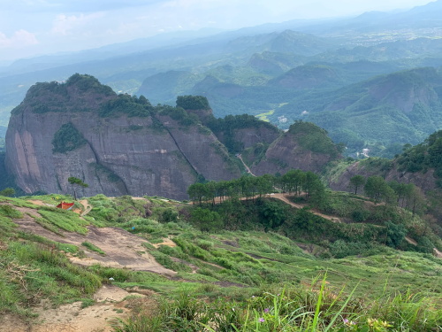 远处较矮连片的山头也是丹霞地质,不少石块掉落,颇有石窟得感觉!回到寿圣寺,穿过寺庙或者从旁边的小路直上,沿着山脚走就可见登山线路了!