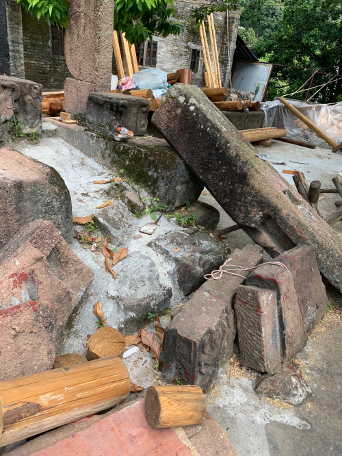 然后是寺庙仅存台阶及多处石雕,依稀可见曾经香火鼎盛。