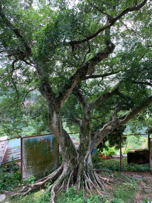 值得一提的是这颗树了,真是顽强生长!葱庙下面穿过后,沿着山脚一片茶园!