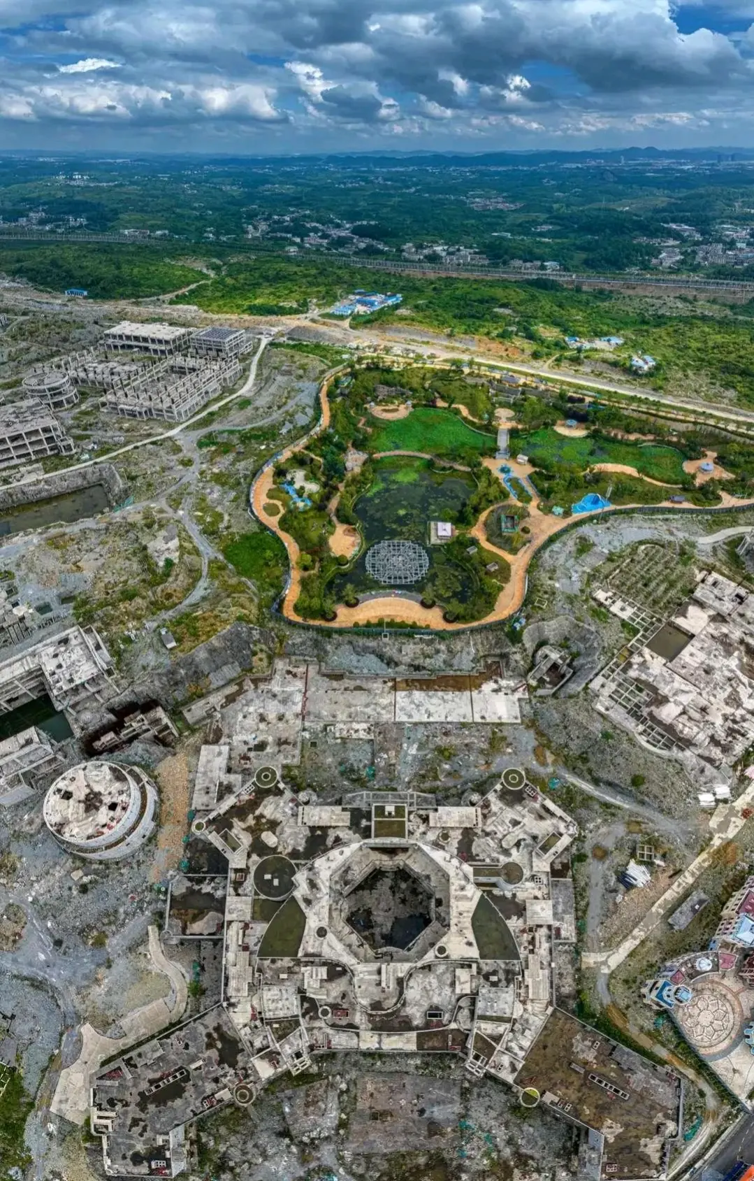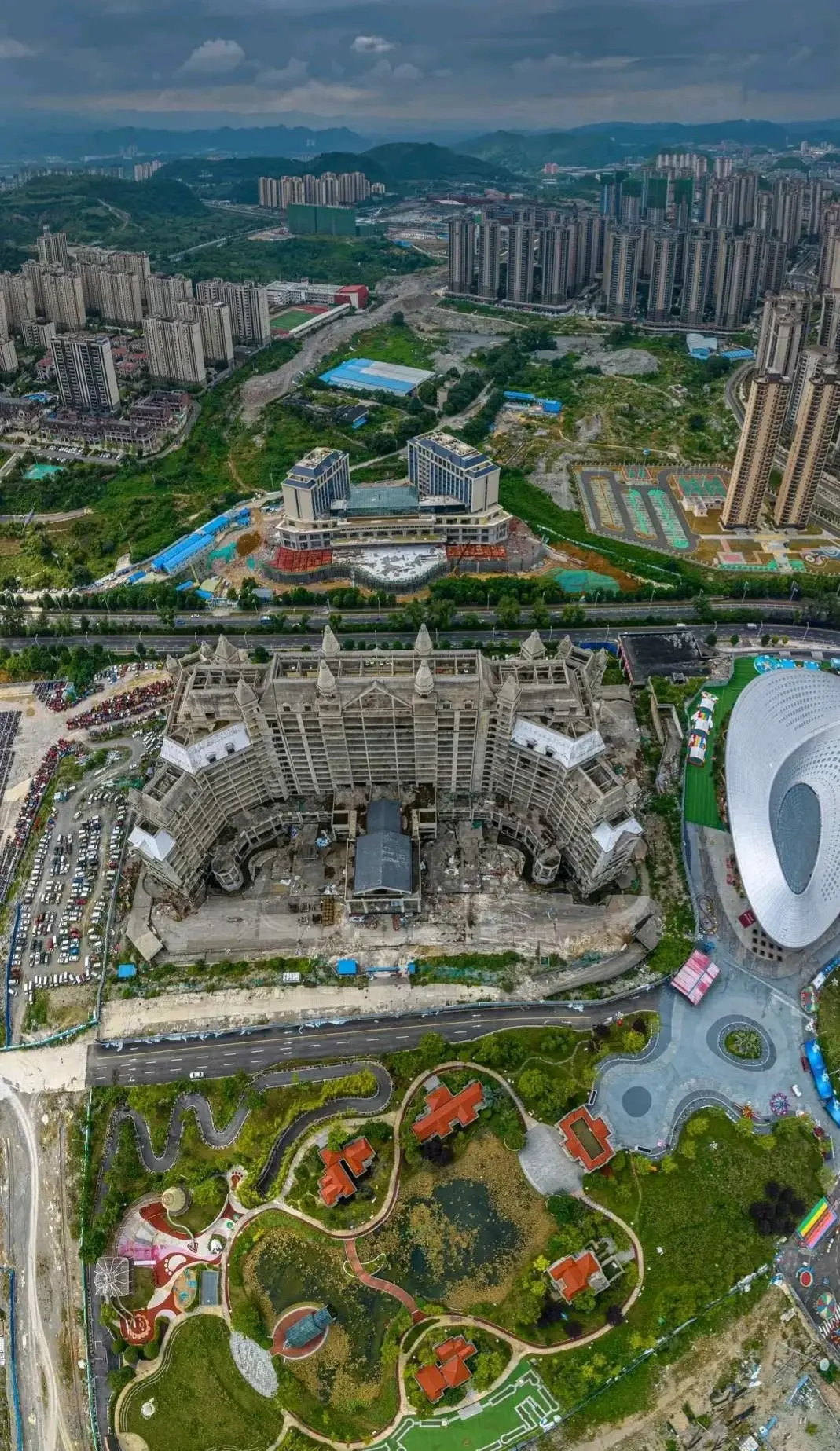 恒大贵州文化旅游城,是2017年贵州引进的重大工程,2018开始建设,在贵阳花溪区,占地8000亩,恒大集团投资1000多亿资金,恒大曾预言将是贵州最大的文化旅游名城,集主题酒店、购物中心、高档住宅区、别墅区、儿童世界乐园、风情美食街、国际会议中心的综合性旅游文化项目,如今却成为最出名的烂尾城,最惨的是业主。