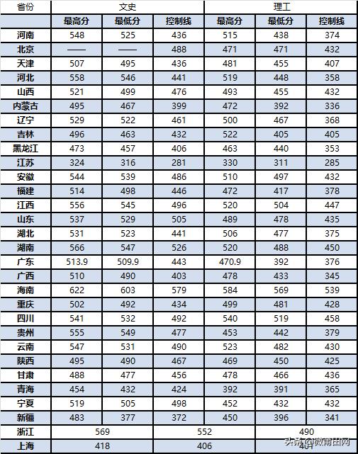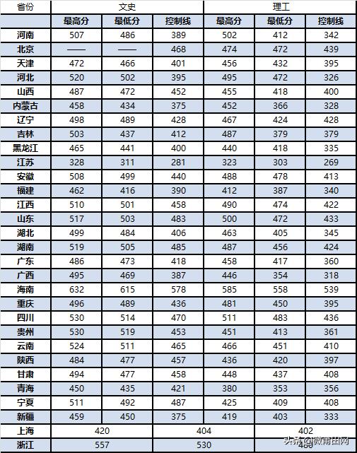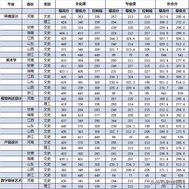 注:美术类专业按文化课成绩40%,专业课成绩60%比例合成总成绩,由高到低择优录取。浙江省综合分按照浙江省规定的方式进行。