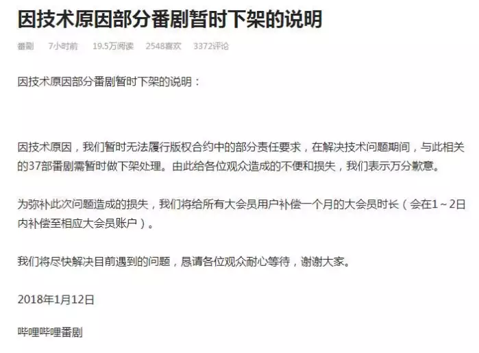 但是b站因为一开始就承诺过观众不会在视频中添加广告,所以只能对东映的番剧进行下架处理。