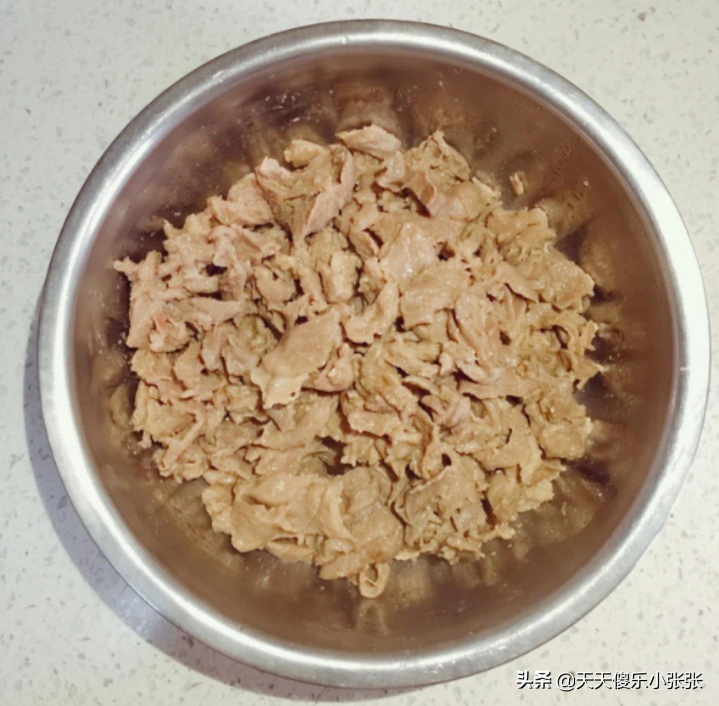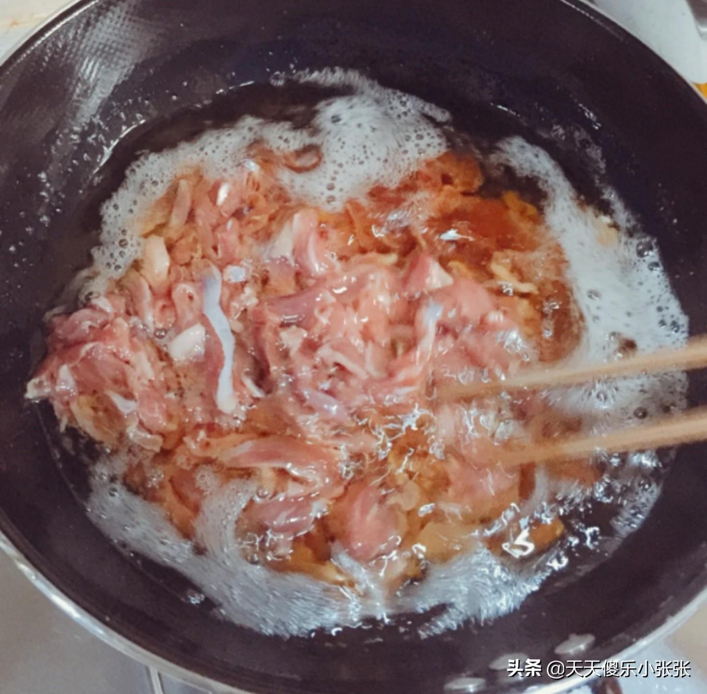 (经过这一步,羊肉已经变色,静置一会后会渗出血水,这是没有关系的,因为接下来还会炒制,这一步的目的是为了让羊肉更嫩滑。)