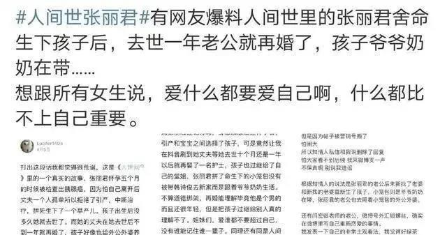 更有网友怒怼张丽君的丈夫韩诗俊,骂他是渣男,不该这么快就忘了为他舍命生子的前妻。