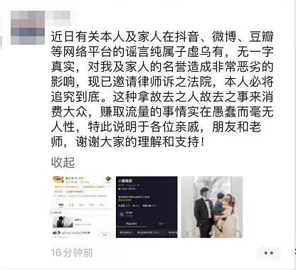 韩诗俊和家人的生活被严重影响,这个沉默的男人终于忍无可忍,将造谣媒体诉诸法律途径,并发了朋友圈澄清。