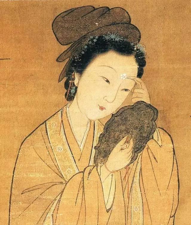 以花钿来表现女子欢愉、娇媚的情态与美貌。花钿本身就是漂亮精致的饰物,用来装饰女子的容颜,则更显得女子娇俏秀丽。"芙蓉出水妒花钿",以花钿代佳人,意指以花钿为饰的女子是那样的美艳,就连出水的芙蓉都会妒忌。花钿的魅力由此可见一斑。"花间有游妓,醉去堕金钿。"花钿是古代女子妆台上的亲密伙伴,在男人的眼中,有香艳、迷人的意味。