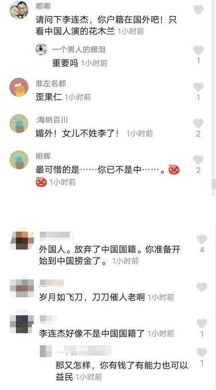 李连杰对爱国的表现让很多网友在评论区却炸了,不停的贬低李连杰改国籍的事情并且还问道:李连杰的女儿失败跟他的姓吗?