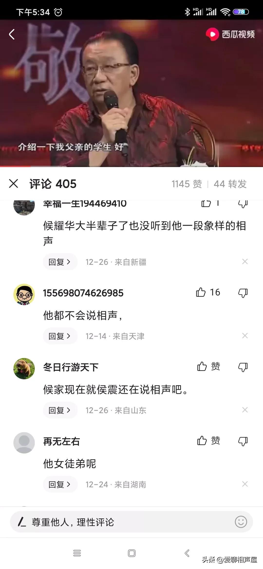 看到这里,网友不淡定了,纷纷吐槽,有一位网友说的对,侯耀华活了大半辈子了,都没有说过一段像样的作品,还有一位网友直接说他就不会说相声。